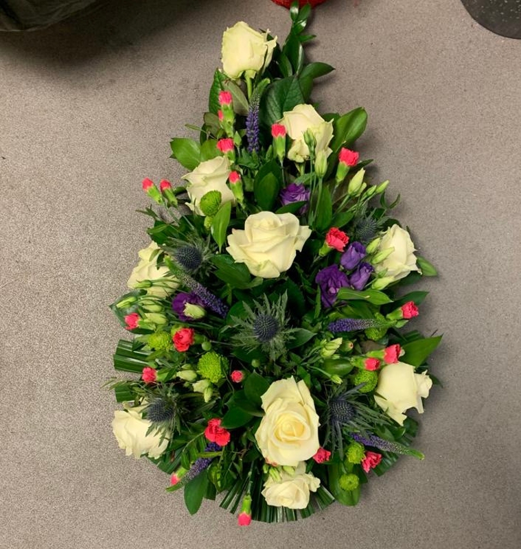 MIXED SPRAY OF ROSES THISTLES SPRAY CARNTATIONS AND LIZIANTHUS